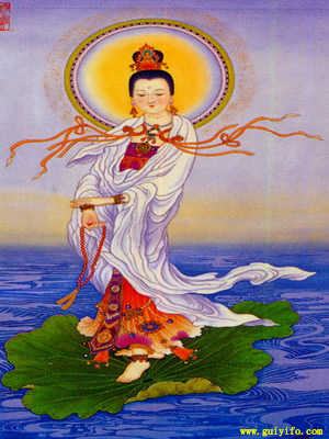 双手相叉或低垂,在水中立或坐于莲叶之上,身着天衣,飘然自得地浮于水面。表三十三身之执金刚身。