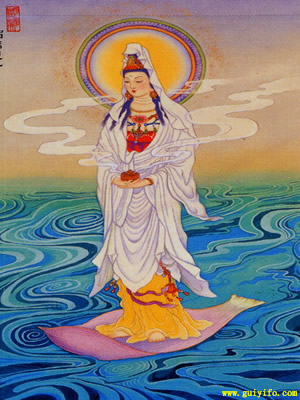 火焰消失之时,出现在眼前是身著白衣,手持琉璃炉,脚踏莲花的菩萨,有这段传说之后,后人才尊称他為琉璃观音。
